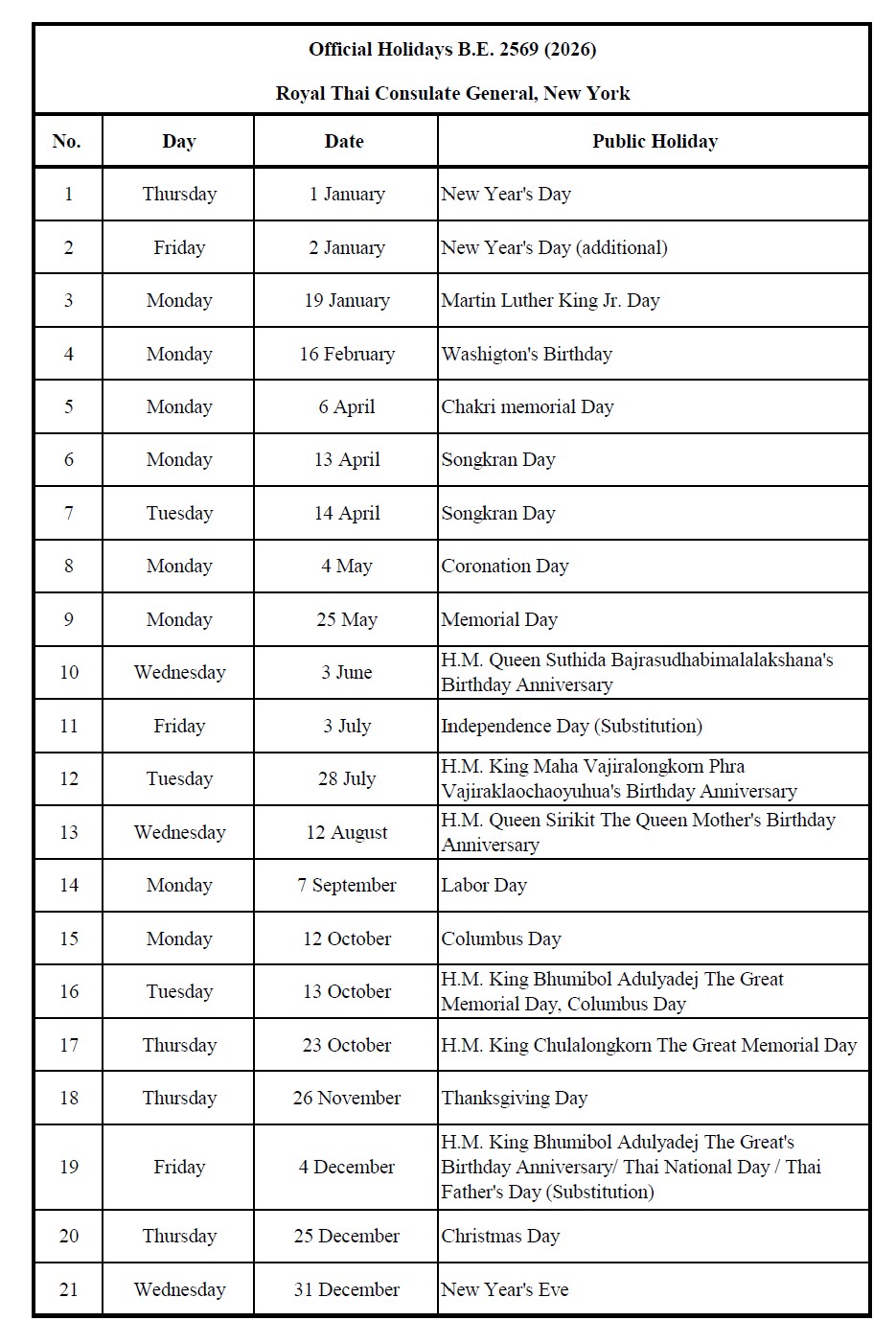 วันหยุดราชการประจำปี พ.ศ. 2569